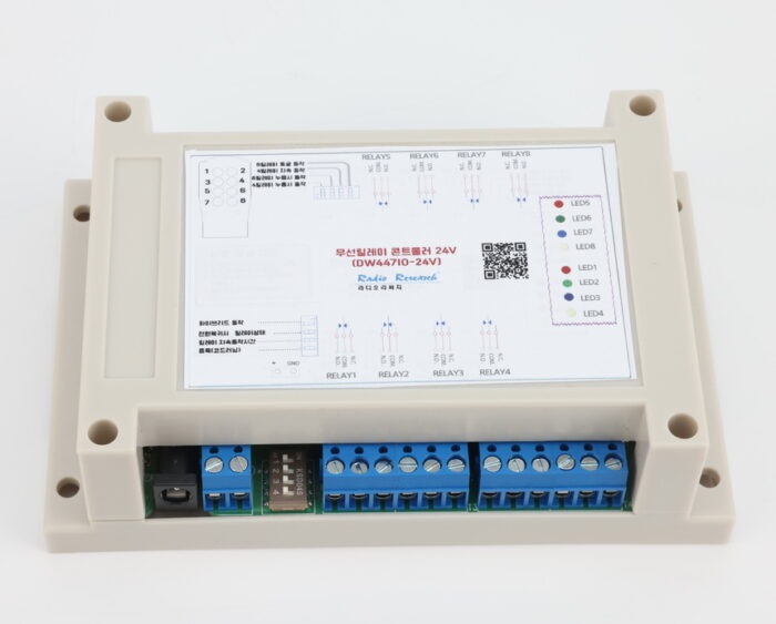 v 우측에 8개의 LED는 릴레이 동작을 바로 보여주고, 좌측의 2개의 LED는 콘트롤보드의 동작 상태를 표시함